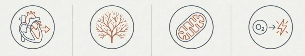 最大酸素摂取量(VO2max)は、身体が運動中に利用できる酸素量を示す指標であり、体力や持久力の根幹を表す。